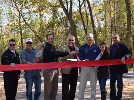 Scott County, Minn. – Ribbons were cut at two Scott County trail projects funded by the Shakopee Mdewakanton Sioux Community (SMSC) on Tuesday, as these new and improved trails officially opened to the public. The SMSC announced $366,000 in grants in January to fund five Scott County trail projects; the trails in Elko New Market and New Prague were the first to be completed.